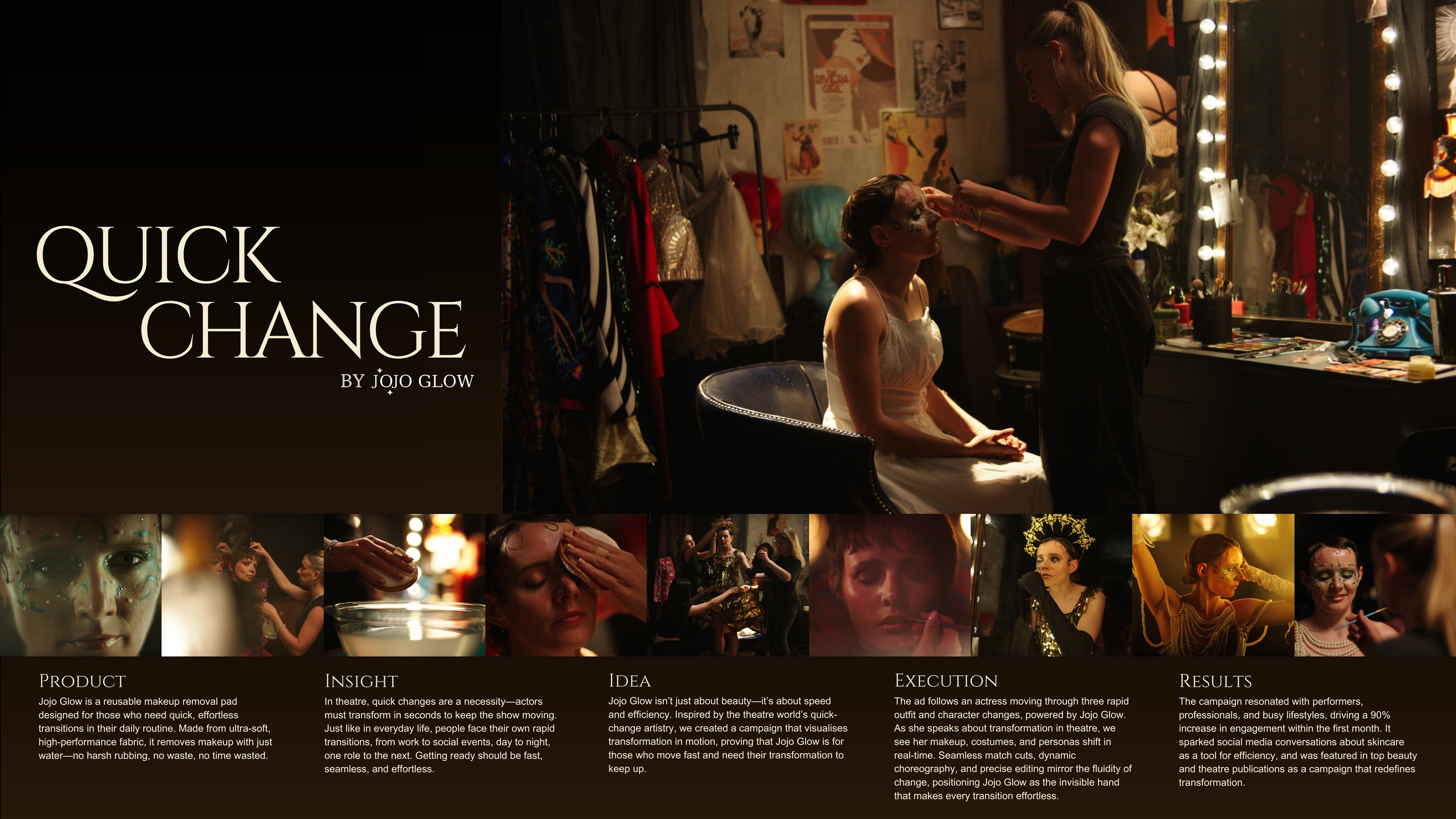 A vibrant campaign film designed to position JoJo Glow as the ultimate skincare brand for fast-paced beauty lovers. The concept centres on transformation capturing the feeling of instant confidence that comes with great skin.